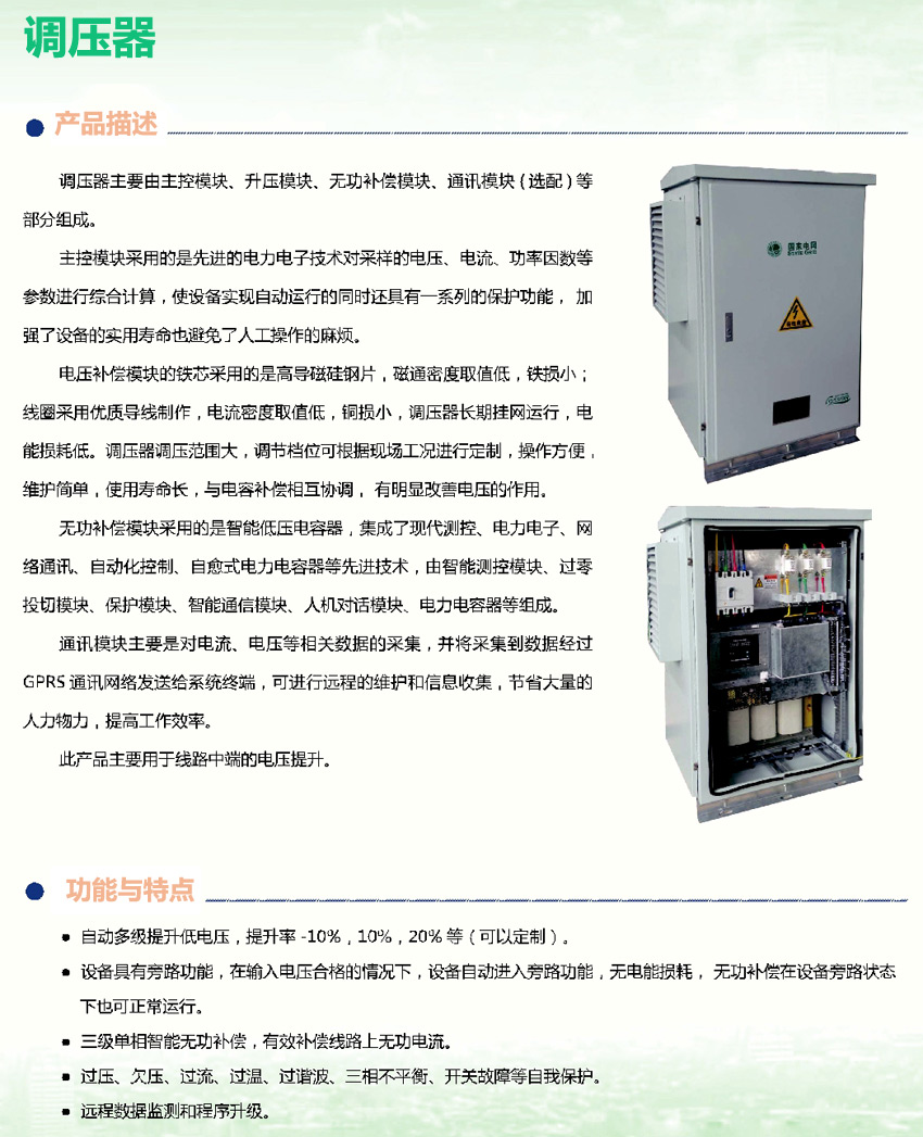調(diào)壓器主要由主控模塊、升壓模塊、無功補償模塊、通訊模塊(選配)等部分組成。